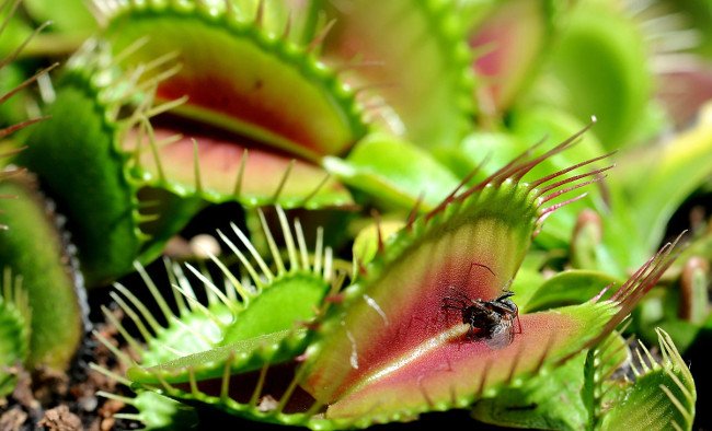 Venus flytrap (còn gọi là Venus's flytrap hoặc Venus' flytrap), Dionaea muscipula, là loại cây ăn thịt xuất xứ ở các vùng đất ngập nước cận nhiệt đới ở vùng ven biển phía Đông Hoa Kỳ, Bắc Carolina và Nam Carolina. Con mồi chủ yếu của nó là côn trùng và nhện, với cấu trúc bẫy được hình thành từ phần cuối của mỗi chiếc lá và được kích hoạt bởi các sợi lông nhỏ trên bề mặt bên trong của bẫy. Khi côn trùng hoặc nhện bò vào và chạm phải một sợi lông cảm ứng, chiếc bẫy sẽ được đóng ngay sau đó nếu một sợi lông khác cũng được kích thích trong vòng 20 giây sau lần chạm đầu tiên. Việc yêu cầu kích thích hai lần trong cơ chế bắt mồi như vậy nhằm mục đích chống lãng phí năng lượng khi bắt phải những vật thể không có giá trị dinh dưỡng.